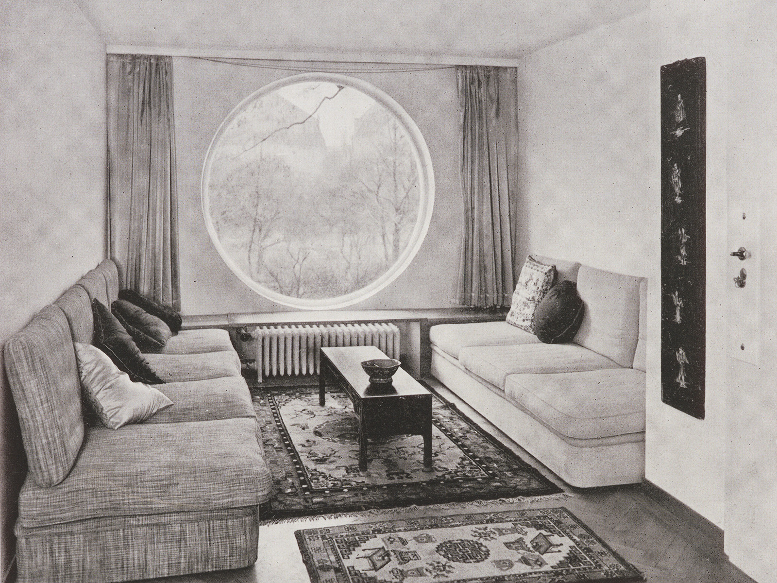 Tea room with round window, 1931